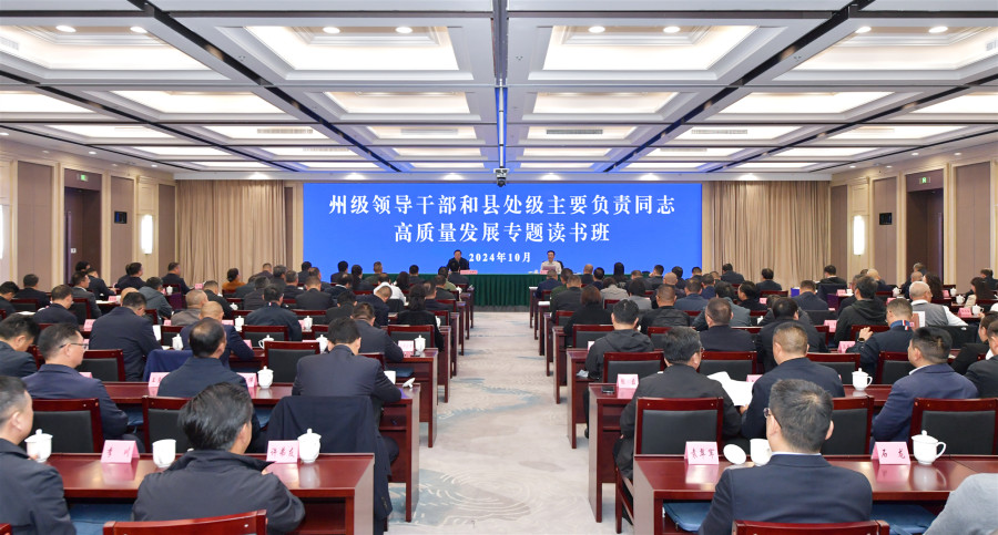 州級領(lǐng)導(dǎo)干部和縣處級主要負責(zé)同志推動高質(zhì)量發(fā)展讀書班專題輔導(dǎo)報告會舉行 羅振華主持會議??李為國李強馮宇參加